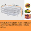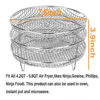 A well made and quite useful air fryer accessory, just as described. It's a bit too much of a tight fit for a Ninja AF101 air fryer (4 quarts) unless you use a gripper gadget to help lift the trays out. But these work very well with the larger Gourmia models (6 and 7 quarts) with more space around the sides. Good even if not using all the layers of the rack, to simply cook some food with better air circulation while letting the drippings fall into a liner below. Easy to clean with only a little soaking and scrubbing even if you forget to brush the surface with some oil before air frying. Shipped soon after ordering and arrived quickly and well packaged.