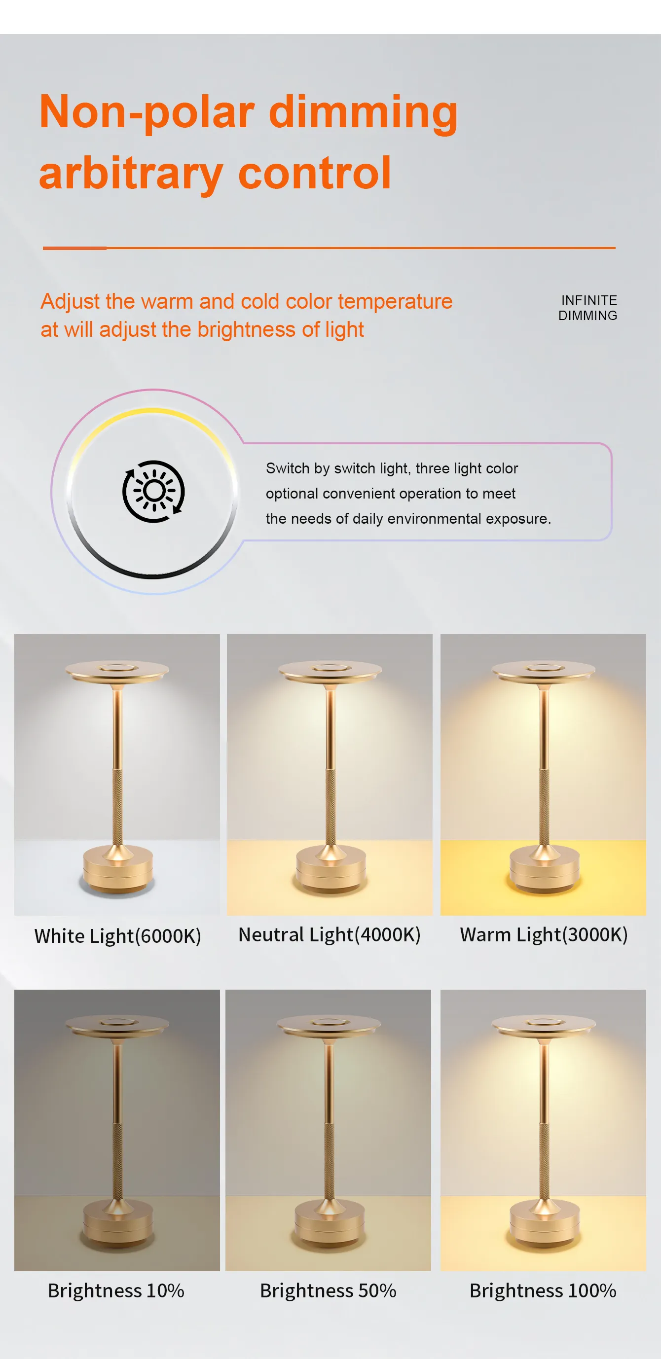 3. Three color dimming: Warm Light / White Light / Neutral Light